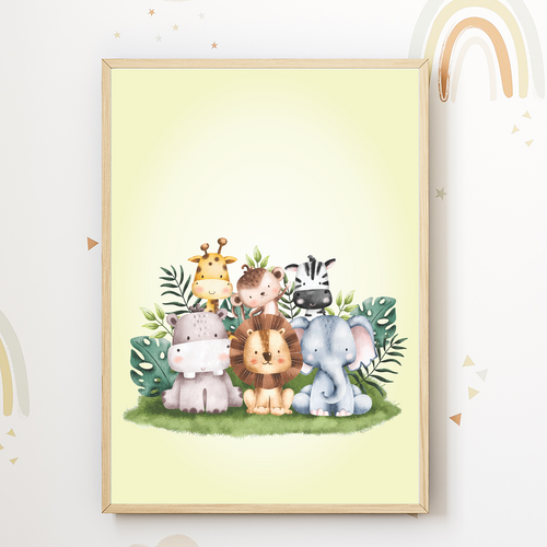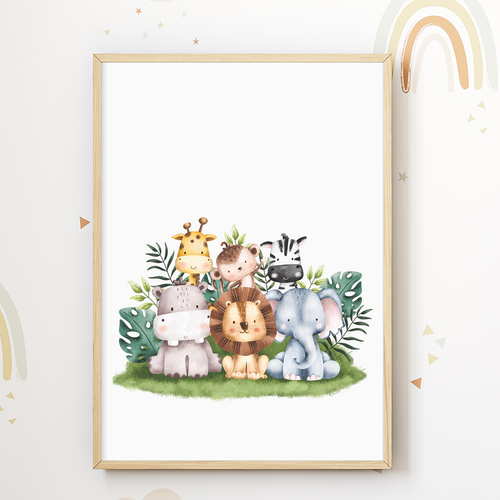 Niedliche Safari Tiere Kinderzimmer Bild DIN A4 Poster Babyzimmer Wandbild Dekoration