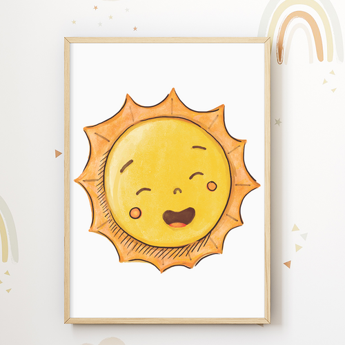 Lachende Sonne Kinderzimmer Bild DIN A4 Poster Babyzimmer Wandbild Dekoration