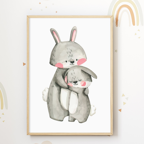 Hase Mama Kind Kinderzimmer Bild DIN A4 Poster Babyzimmer Wandbild Dekoration