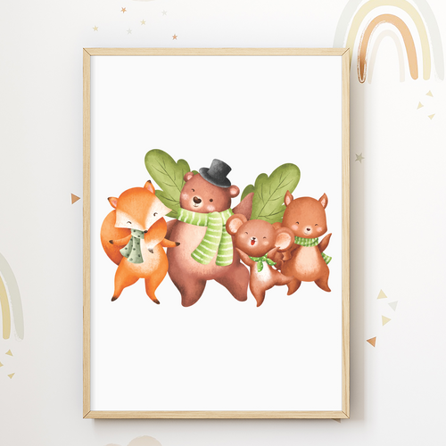 Fröhliche Waldtiere Kinderzimmer Bild DIN A4 Poster Babyzimmer Wandbild Dekoration