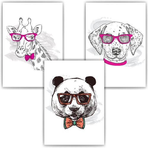 Giraffe Panda Dalmatiner Sonnenbrille Bilder 3er Set DIN A4 Kinderzimmer Wandbilder Babyzimmer Poster Dekoration