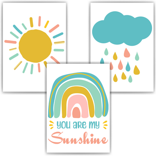 You are my Sunshine Bilder 3er Set DIN A4 Kinderzimmer Wandbilder Babyzimmer Poster Dekoration Sonne Regenbogen