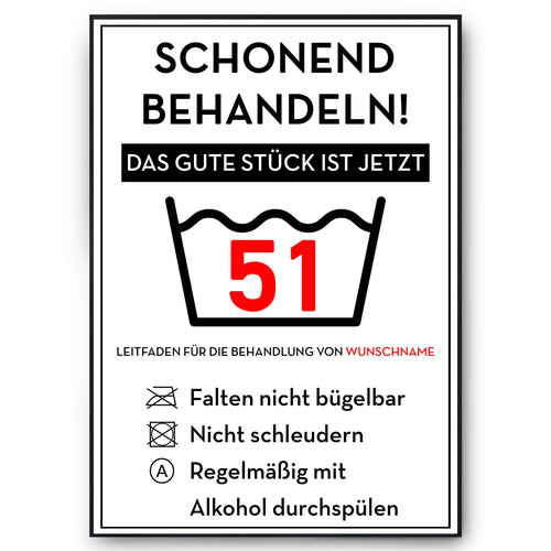Personalisiertes Geschenk zum 51. Geburtstag Frau Mann Wäsche Lustige Geschenkidee 51 Jahre Geburtstagskarte Witzige Party Deko