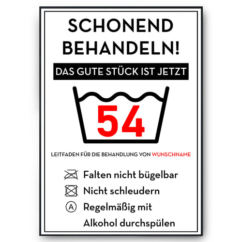 Personalisiertes Geschenk zum 54. Geburtstag Frau Mann Wäsche Lustige Geschenkidee 54 Jahre Geburtstagskarte Witzige Party Deko