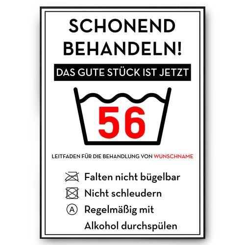 Personalisiertes Geschenk zum 56. Geburtstag Frau Mann Wäsche Lustige Geschenkidee 56 Jahre Geburtstagskarte Witzige Party Deko