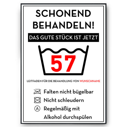 Personalisiertes Geschenk zum 57. Geburtstag Frau Mann Wäsche Lustige Geschenkidee 57 Jahre Geburtstagskarte Witzige Party Deko
