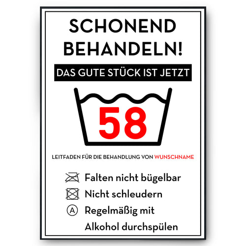 Personalisiertes Geschenk zum 58. Geburtstag Frau Mann Wäsche Lustige Geschenkidee 58 Jahre Geburtstagskarte Witzige Party Deko