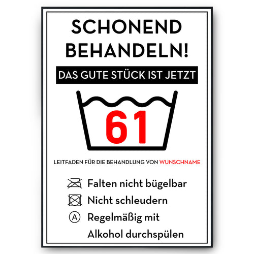 Personalisiertes Geschenk zum 61. Geburtstag Frau Mann Wäsche Lustige Geschenkidee 61 Jahre Geburtstagskarte Witzige Party Deko