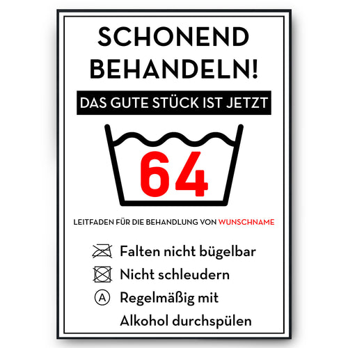 Personalisiertes Geschenk zum 64. Geburtstag Frau Mann Wäsche Lustige Geschenkidee 64 Jahre Geburtstagskarte Witzige Party Deko