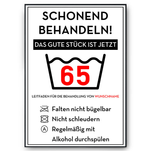 Personalisiertes Geschenk zum 65. Geburtstag Frau Mann Wäsche Lustige Geschenkidee 65 Jahre Geburtstagskarte Witzige Party Deko