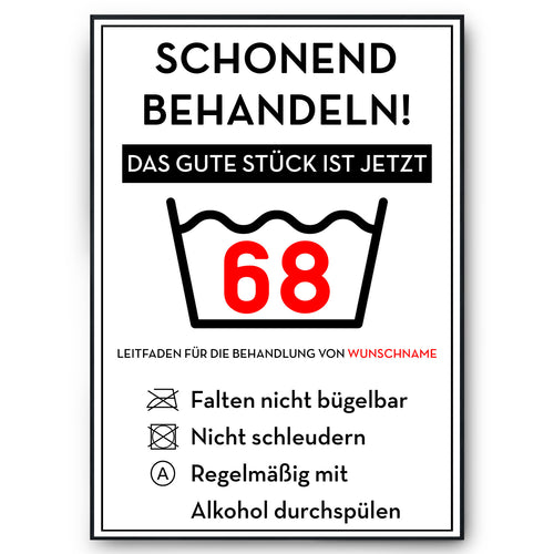 Personalisiertes Geschenk zum 68. Geburtstag Frau Mann Wäsche Lustige Geschenkidee 68 Jahre Geburtstagskarte Witzige Party Deko