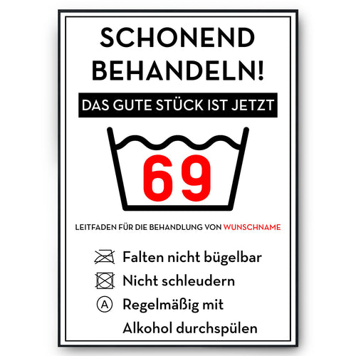Personalisiertes Geschenk zum 69. Geburtstag Frau Mann Wäsche Lustige Geschenkidee 69 Jahre Geburtstagskarte Witzige Party Deko