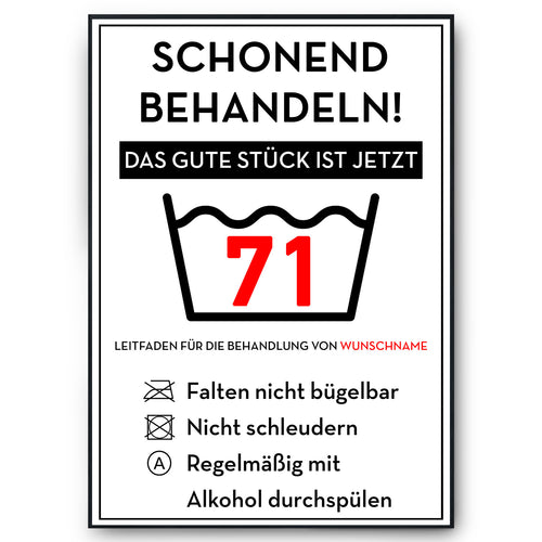 Personalisiertes Geschenk zum 71. Geburtstag Frau Mann Wäsche Lustige Geschenkidee 71 Jahre Geburtstagskarte Witzige Party Deko