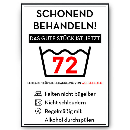 Personalisiertes Geschenk zum 72. Geburtstag Frau Mann Wäsche Lustige Geschenkidee 72 Jahre Geburtstagskarte Witzige Party Deko