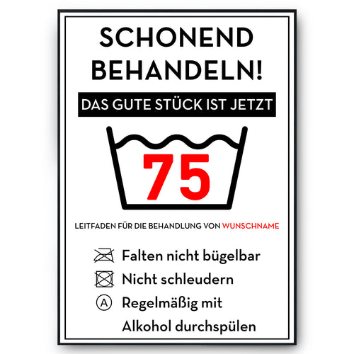Personalisiertes Geschenk zum 75. Geburtstag Frau Mann Wäsche Lustige Geschenkidee 75 Jahre Geburtstagskarte Witzige Party Deko