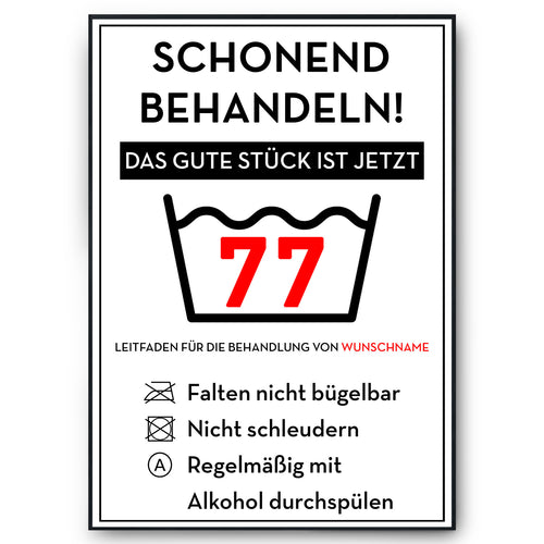 Personalisiertes Geschenk zum 77. Geburtstag Frau Mann Wäsche Lustige Geschenkidee 77 Jahre Geburtstagskarte Witzige Party Deko