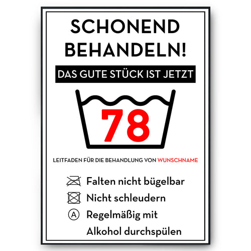 Personalisiertes Geschenk zum 78. Geburtstag Frau Mann Wäsche Lustige Geschenkidee 78 Jahre Geburtstagskarte Witzige Party Deko