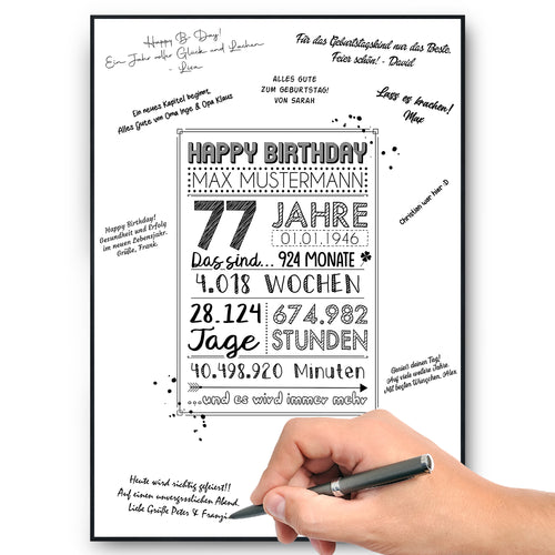 77. Geburtstag Geschenk Personalisierte Geburtstagskarte Gästebuch Jahrgang 1948 Poster Männer Frauen 77 Jahre Dekoration