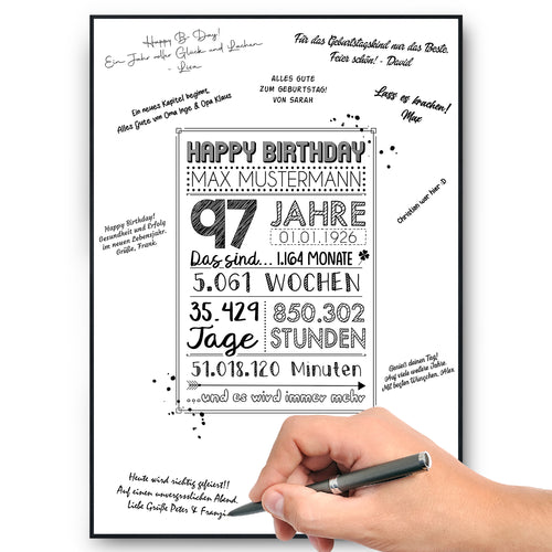 97. Geburtstag Geschenk Personalisierte Geburtstagskarte Gästebuch Jahrgang 1928 Poster Männer Frauen 97 Jahre Dekoration